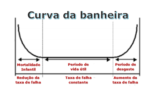 A curva da taxa de falhas de grande número de componentes e sistemas é