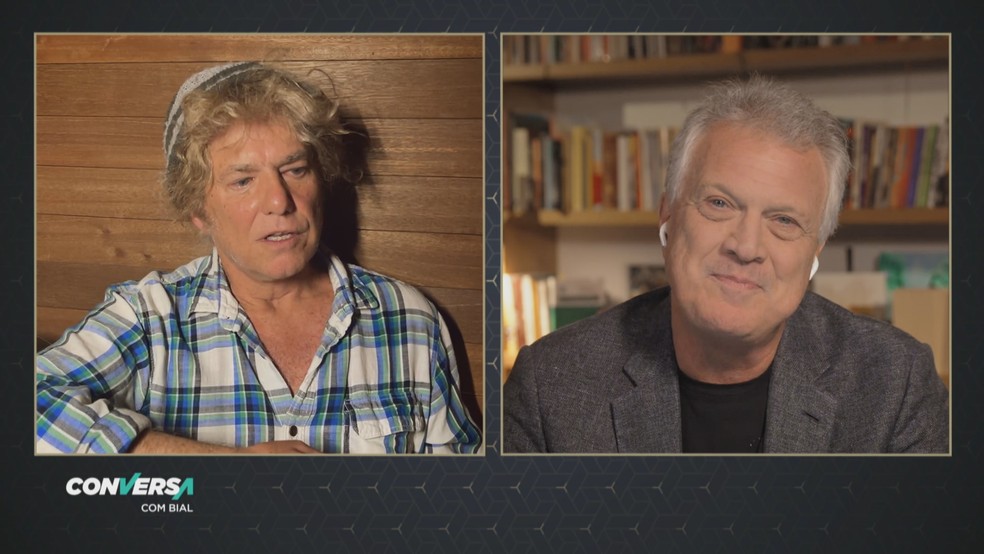 Pedro Bial recebe Pat Metheny no 'Conversa' — Foto: Reprodução/TV Globo
