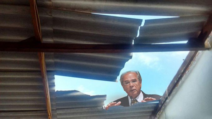 Na internet, o ex-presidente da Câmara Rodrigo Maia, desafeto de Guedes, ironizou o ministro com uma imagem na qual ele aparece quebrando diante de um telhado quebrado.