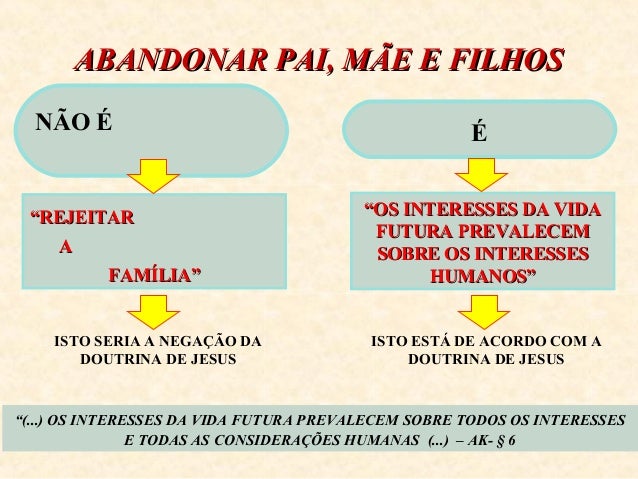• Odiar os pais • Abandonar pai, mãe e filhos • Deixar aos mortos o