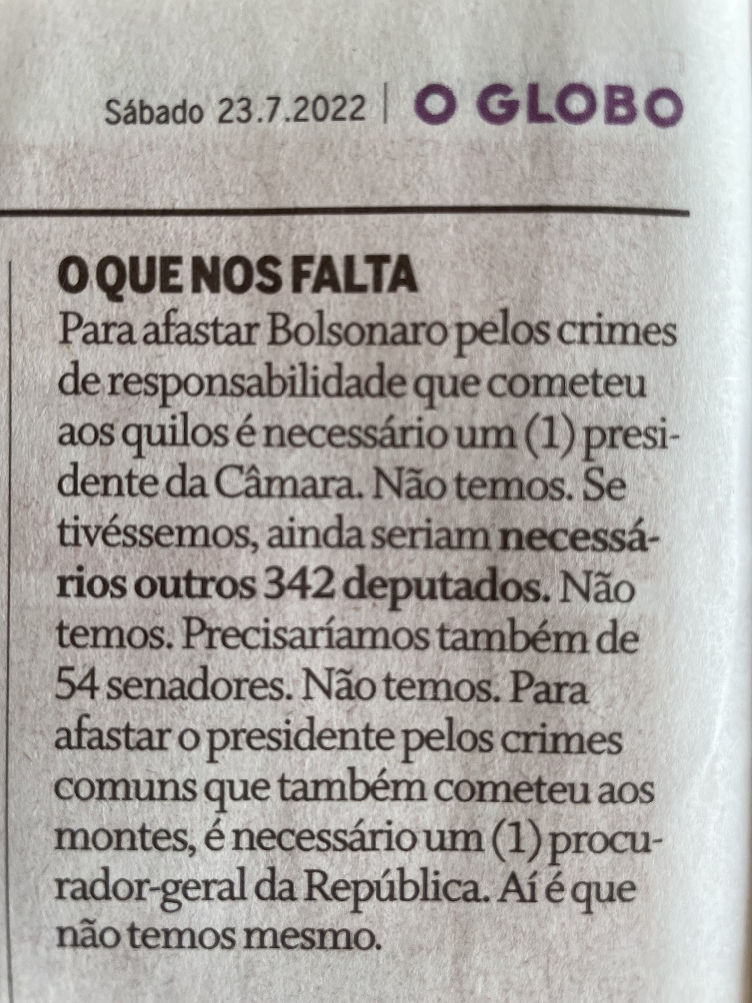 Lembro ainda que a “dificuldade de diálogo com o Congresso” não é razão legal e constitucional para impeachment em um regime presidencialista, como ele bem sabe.