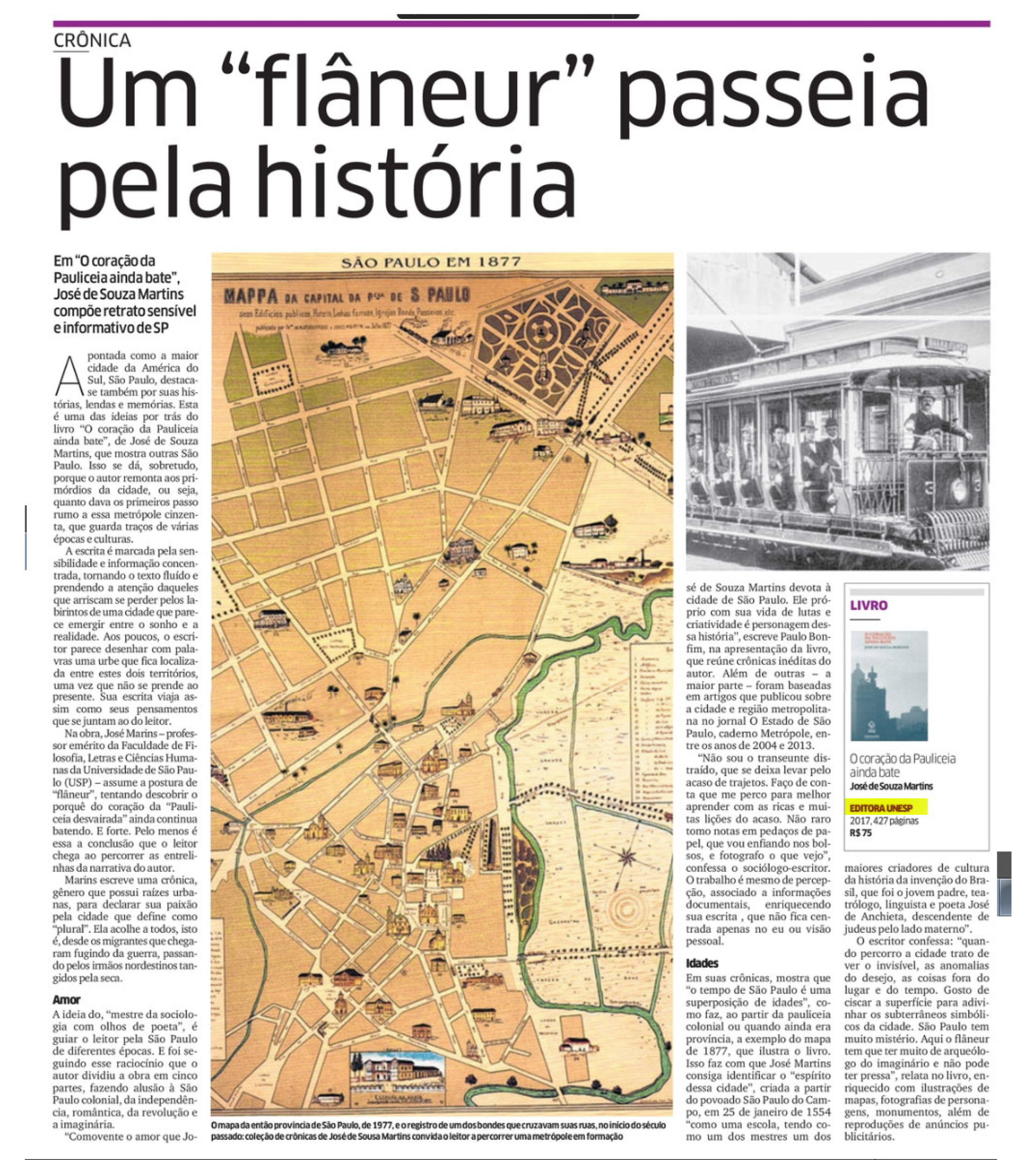 O jornal Diário do Nordeste, em sua edição de 23 de setembro, resenhou o livro O coração da Pauliceia ainda bate, de José de Souza Martins. Neste livro, o autor reúne crônicas inéditas e crônicas baseadas em artigos sobre a cidade de São Paulo e a região metropolitana publicados no caderno "Metrópole" do jornal O Estado de S. Paulo, durante nove anos, de 2004 a 2013. O autor volta um olhar terno, por vezes bem-humorado, outras vezes nostálgico, sobre cantos e recantos paulistanos. Mesclam-se nos saborosos textos o olhar historiográfico, o olhar do sociólogo, mas sobretudo o olhar literário do cronista.