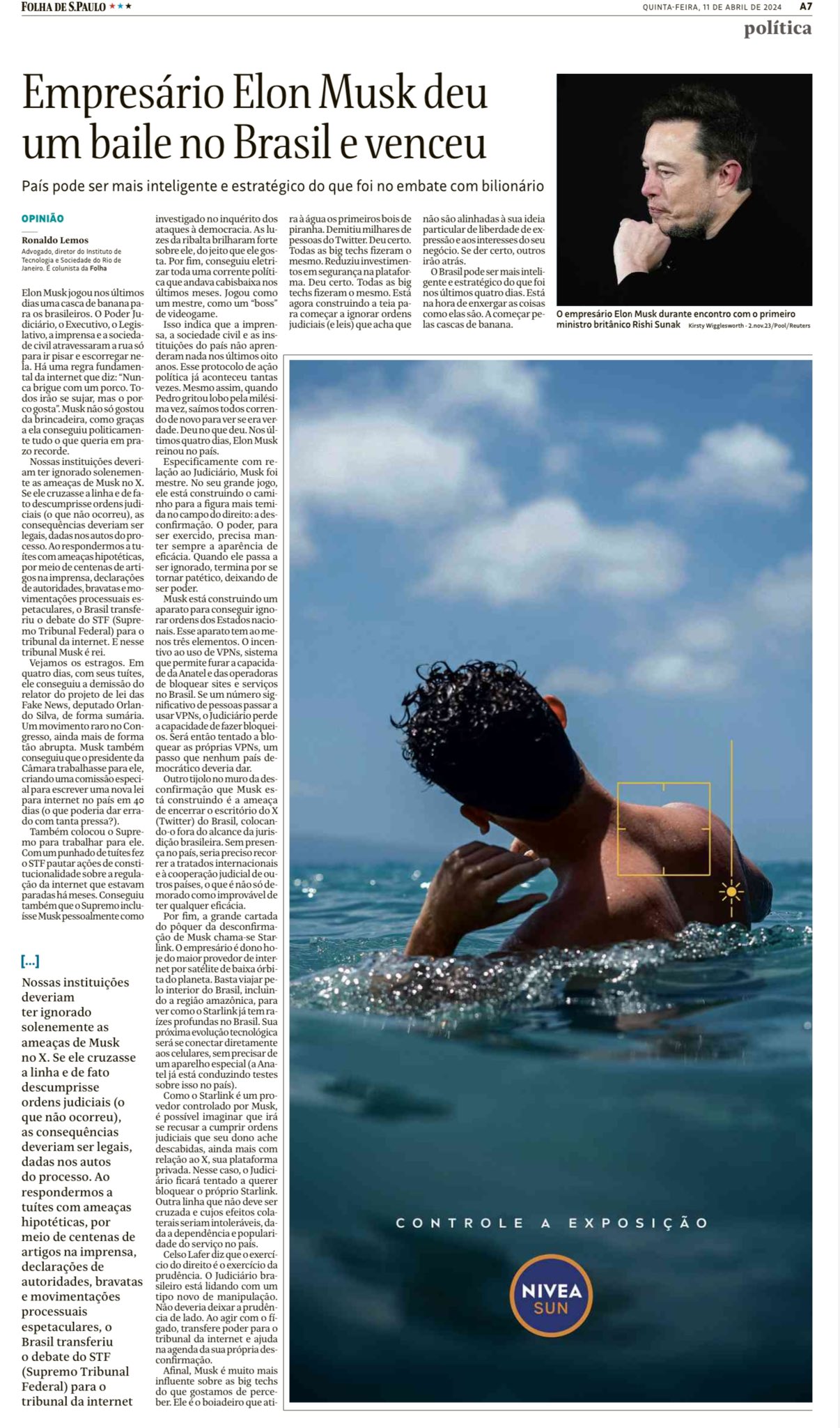 Ronaldo Lemos, Folha de São Paulo (10/04/2024)