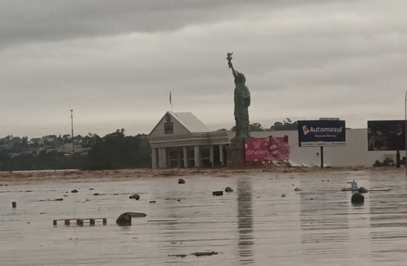 Em Lajeado, devastada pela enchente do rio Taquari, uma solitária Estátua da Liberdade, verde-azulada, de fibra de vidro, segurava há dias a tocha do neoliberalismo econômico no meio da água barrenta. O pedestal arruinado revelava os riscos dessa liberdade de imitação. Frágil em relação à escultura original, de cobre, de Frédéric Auguste Bartholdi, presente do povo francês ao povo americano pelo centenário da Independência. Ela celebra a “Liberdade Iluminando o Mundo”.