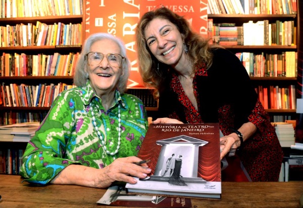 Bárbara Heliodora em dezembro de 2013, ao lado de Marília Pêra, no lançamento de seu livro A História do Teatro no Rio de Janeiro – Foto: Cristina Granato