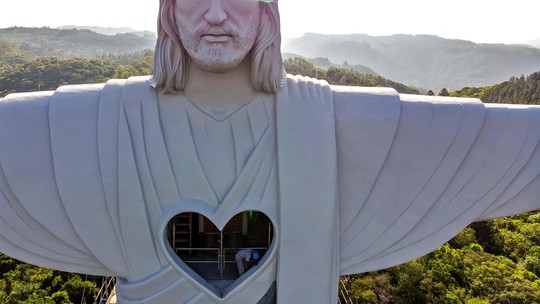 A cena se passava dentro do coração de um Cristo. Literalmente. Uma estátua de 43 metros de altura fincada em Encantado, interior do Rio Grande do Sul. Dentro do peito da estátua — há um recorte em forma de coração — ali, respirava ela, a mocinha centenária.