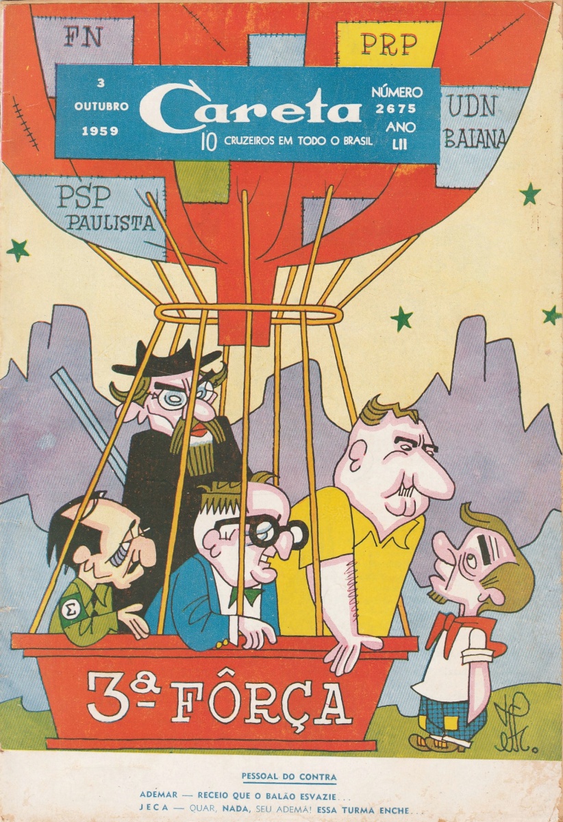 Revista Careta - Charge Política com Getúlio Vargas, Tenório Cavalcante, Plínio Salgado e Adhemar de Barros. Ilustração de Theo. Nº 2675. Ano LII. Outubro de 1959. No estado vide foto.