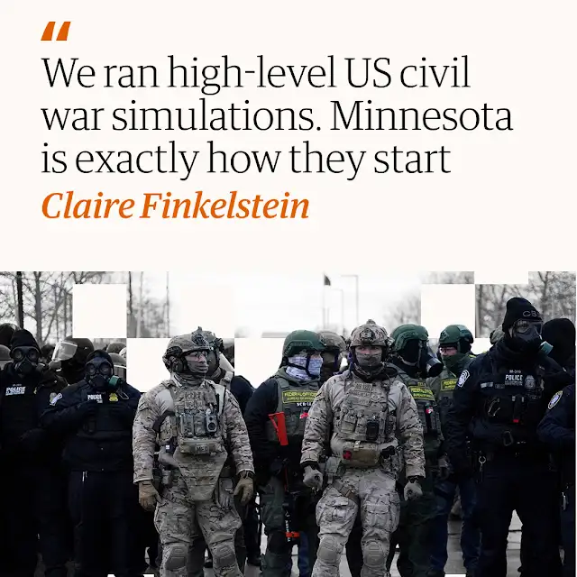 Enquanto o Brasil conviveu com a erosão silenciosa da informalidade, os Estados Unidos enfrentam hoje um risco de natureza distinta. Em artigo recente no The Guardian, a professora Claire Finkelstein, da Universidade da Pensilvânia, alertou que operações federais do ICE em Minneapolis começam a espelhar cenários testados em uma simulação militar conduzida em 2024.