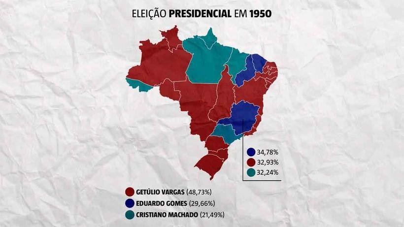 Resultado da eleição presidencial de 1950. Na época, não havia 2º turno.