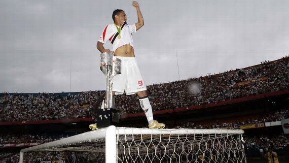 Leandro comemora o título brasileiro sobre o gol do Morumbi Gazeta Press