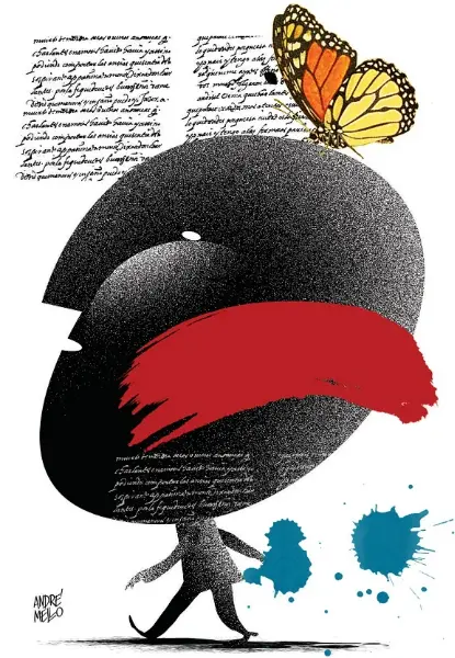 "De posse e pouse nasceu a pose, sem s e sem u. Como nasceu a vara em cálix bento da dupla mineira. Ó Deus salve o cálix bento, que mil tons receberia de um maestro da mesma cor, filho e neto de mineiros nascido na diáspora da Portela e recambiado por Três que já exilara pra praias paulistas a mais famosa família de migrantes afrodescendentes brasileiros. Tem gente que chega Tem gente que parte. Partindo ou unindo corações."